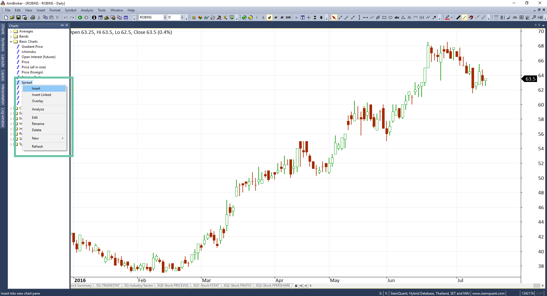 1. เปิดกราฟ Amibroker ขึ้นมา จากนั้นเลือกหุ้นที่ต้องการซึ่งก็คือ ROBINS