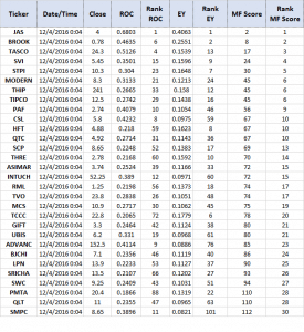 Home»งานวิจัยและบทความทั้งหมด»เคล็ดลับ Amibroker»ส่องงบการเงิน 2558 ด้วย SQ Hybrid Database ตอน : Magic Formula»MFTop30