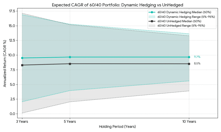 | Performance Metrics | 60/40 Dynamic Hedged | 60/40 Unhedged (Benchmark) |