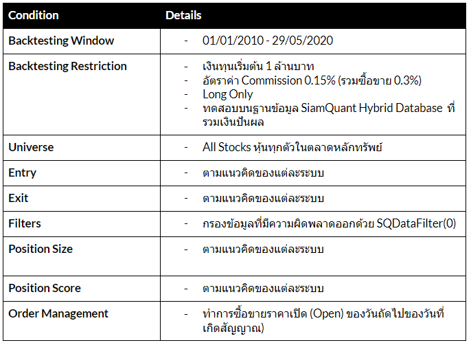 ทีมงานวิจัยระบบการลงทุน SiamQuant Alpha Researcher ด้วยความที่ต้องการสร้างผลตอบแทนให้ชนะตลาด จึงเริ่มต้นการลงทุนอย่างเป็นระบบมามากกว่า 5 ปีเพราะทำให้เราสามารถพิสูจน์ถึงแนวคิดการลงทุนต่างๆได้ด้วยวิธีการทางวิทยาศาสตร์ที่จับต้องได้จริง ^^