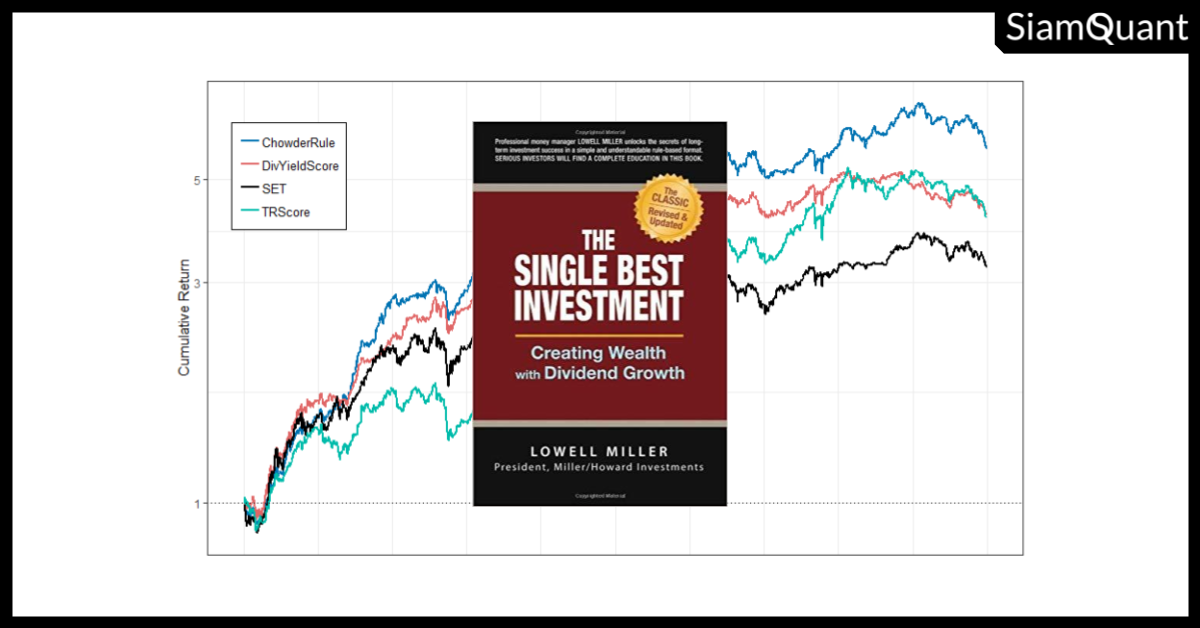 จากผลการวิจัยทดสอบย้อนหลัง เราได้ค้นพบว่า Chowder Rule นั้นมีส่วนช่วยในนักลงทุนได้รับทั้งผลตอบแทนและเงินปันผลที่เพิ่มขึ้นอย่างมีนัยยะ ซึ่งสอดคล้องกับแนวคิดจากหนังสือ The Single Best Investment ที่อาศัยการได้ประโยชน์ “สองเด้ง” จากทั้งราคาหุ้นที่เพิ่มขึ้นและเงินปันผลที่ได้รับ โดยเห็นได้ชัดว่าถึงแม้กลยุทธ์ DivYield Score นั้นจะได้รับเงินปันผลที่สูงกว่า Chowder Rule แต่ผลตอบแทนโดยรวมกลับต่ำกว่าอย่างมีนัยยะสำคัญ