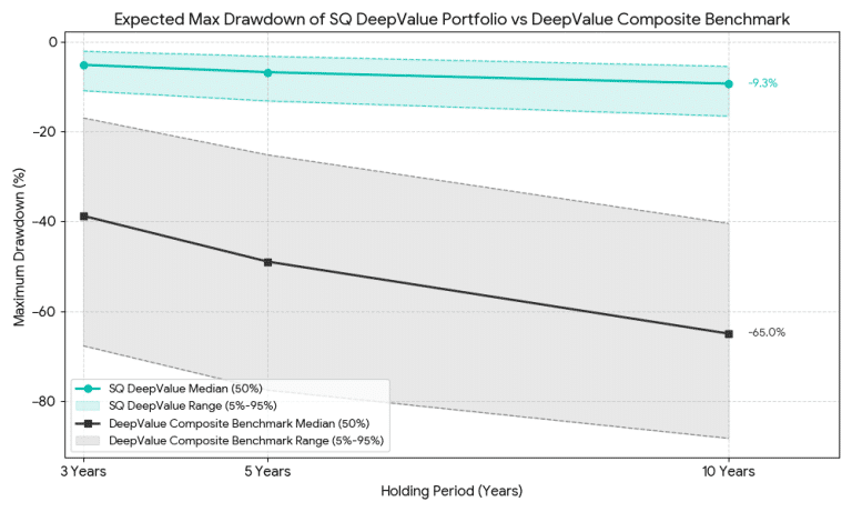 โดยจากผลการวิจัยย้อนหลังด้วยความเข้มงวดระดับสูงในตลาดหุ้นไทยในช่วงเกือบ 30 ปีที่ผ่านมาตั้งแต่ปี ค.ศ. 1997-2025 นั้น ให้ผลลัพธ์ที่สะท้อนให้เห็นว่ากลยุทธ์การลงทุน DeepValue Strategy สามารถที่จะอยู่รอดผ่านวิกฤติเศรษฐกิจต่างๆในประเทศไทย และสร้างผลตอบแทนที่ยั่งยืนในระยะยาวได้เป็นอย่างดี โดยมีผลตอบแทนทบต้นที่ราว 12.64% ต่อปี และมีอัตราการถดถอยของพอร์ตการลงทุนที่รุนแรงที่สุดหรือ Maximum Drawdown ที่เพียงราว -13.43% ในช่วงวิกฤติต้มยำกุ้งในประเทศไทย ในช่วง ค.ศ. 1996-1999