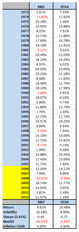 Figure 3_Yearly Return of GTAA vs. Buy and Hold, 1973-2012