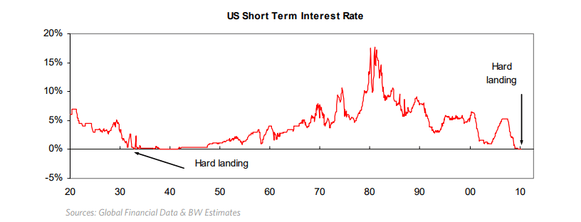 ภาพที่ 14 : Chart แสดงดอกเบี้ยระยะสั้นตกไปที่ 0% ในช่วงปี ค.ศ.1930-1932 และปี ค.ศ. 2007-2008