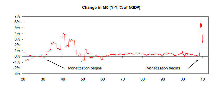 ภาพที่ 15 : Chart แสดงการเปลี่ยนแปลงของเงิน (M0) โดยธนาคารกลางทำการพิมพ์เงินและเพิ่มการใช้จ่ายเงิน
