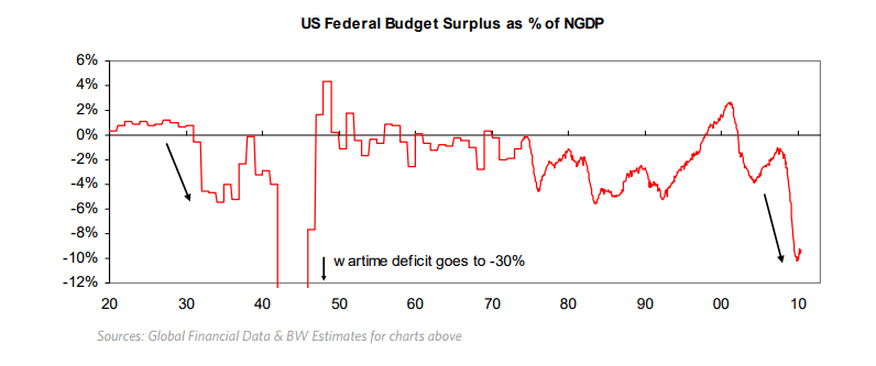 - รัฐบาลกลางเพิ่มการใช้จ่ายเพื่อกระตุ้นเศรษฐกิจ ด้วยการดำเนินนโยบายขาดดุล