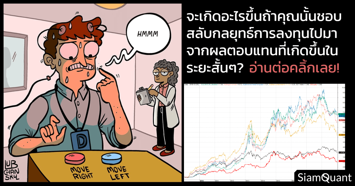 นักลงทุนจำนวนมากมักจะมีความเชื่อในทำนองที่ว่า การสลับปรับเปลื่ยนกลยุทธ์การลงทุนอยู่บ่อยๆ เพื่อให้มีความเหมาะสมกับสภาพตลาดอยู่ตลอดเวลานั้น เป็นกุญแจของการสร้างผลตอบแทนอย่างยั่งยืน ซึ่งในบทความนี้ เราจะมาทดสอบวิจัยให้รู้ถึงผลกระทบของความพยายามในการปรับเปลี่ยนกลยุทธ์การลงทุนเพื่อที่จะสร้างผลตอบแทนให้สูงที่สุดตามสภาวะตลาด ว่าจะเป็นจริงอย่างที่พวกเราเชื่อกันหรือไม่? โดยผลลัพธ์จะเป็นอย่างไรนั้นสามารถติดตามอ่านได้เลยครับ!