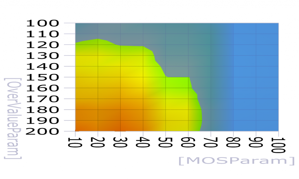 โดยผลลัพท์ที่ได้จะเป็นดังภาพ Heat Map ด้านล่าง ซึ่งแกน X และ Y จะแสดงให้เห็นถึงค่า MOSParam และ OverValueParam และความเข้มของสีจะบอกให้เห็นถึงระดับผลตอบแทนทบต้นหรือ Compound Annual Return (CAR) โดยยิ่งสีเป็นแดงเข้มขึ้นจะหมายถึงมี CAR ที่สูงขึ้นนั่นเอง