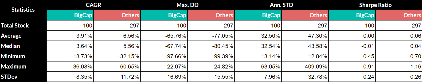 Home»งานวิจัยและบทความทั้งหมด»องค์ความรู้จากการลงทุนอย่างเป็นระบบ»ลงทุนหุ้นใหญ่ดีจริงหรือไม่?»BigCapVSOthersStatistics