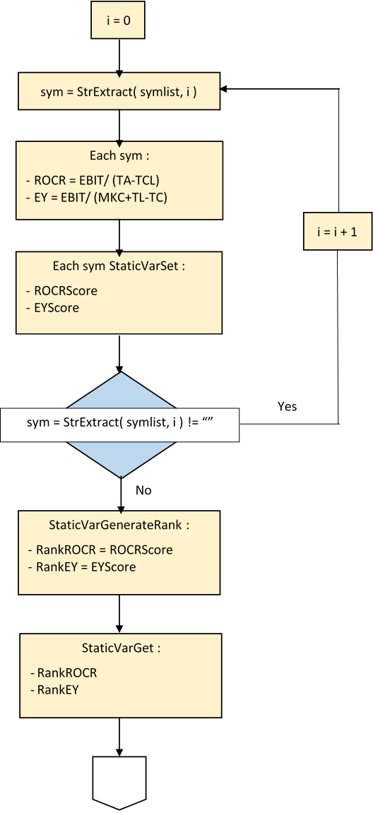 - เก็บค่าอันดับ จากการเรียงอันดับหุ้นแต่ละตัวจากน้อยไปหามาก ตามค่า EY