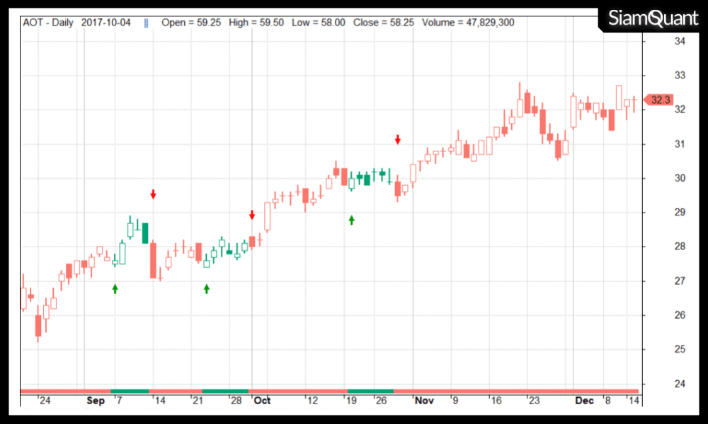 ภาพที่ 4 : ภาพแสดงสัญญาณสัญญาณการเข้าซื้อและขายตามกลยุทธ์การลงทุน OOPS