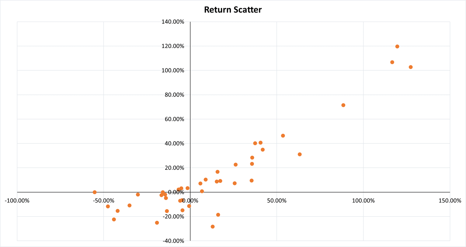 1).  ในกรณีจัดพอร์ตโฟลิโอโดยเลือกเฉพาะหุ้นที่มีค่าผลตอบแทนรวมในอดีต อยู่ใน 10 อันดับแรกเท่านั้น (Top 10 Equal-weighted Portfolio)