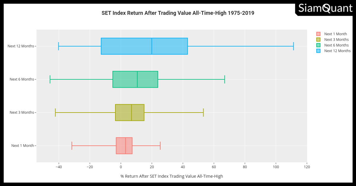 Home»งานวิจัยและบทความทั้งหมด»องค์ความรู้จากการลงทุนอย่างเป็นระบบ»ตลาดหุ้นจะเป็นอย่างไร เมื่อ SET Index สร้างสถิติมูลค่าการซื้อขายสูงสุดเป็นประวัติการณ์?»SET Index Return After Trading Value All-Time-High Fixed