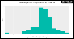Home»งานวิจัยและบทความทั้งหมด»องค์ความรู้จากการลงทุนอย่างเป็นระบบ»ตลาดหุ้นจะเป็นอย่างไร เมื่อ SET Index สร้างสถิติมูลค่าการซื้อขายสูงสุดเป็นประวัติการณ์?»SiamQuant_SET Index Daily Return on Trading Value All-Time-High Day