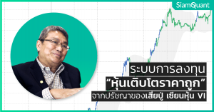 Home»งานวิจัยและบทความทั้งหมด»ระบบการลงทุน “หุ้นเติบโตราคาถูก” จากปรัชญาของ “เสี่ยปู่” เซียนหุ้น VI!»siamquant-growth-stock-cheap-price-vi-cover