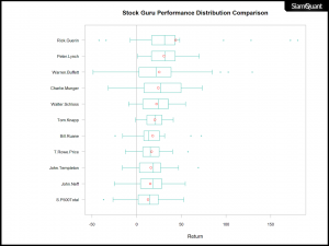 Home»บทความและวิดีโอที่เกี่ยวข้องกับกลยุทธ์การลงทุน 10X»ถอดรหัสผลตอบแทน โคตรตำนานเซียนหุ้นระดับโลก!»Stock Guru Performance Distribution Comparison – SiamQuant